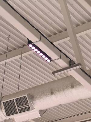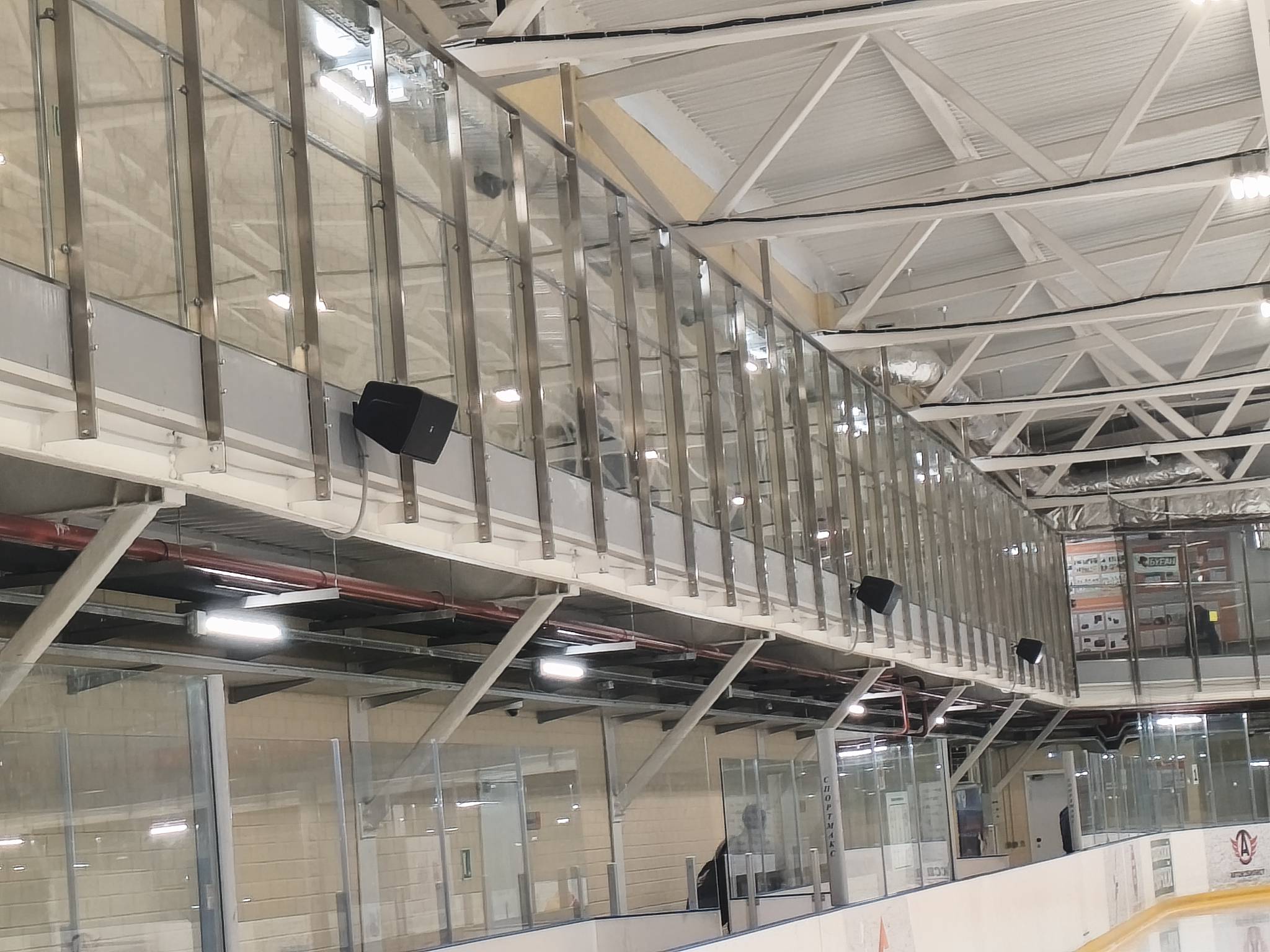 Над ареной смонтированы световые COBBAR панели (64 шт), для подсветки льда во время ледовых катаний.