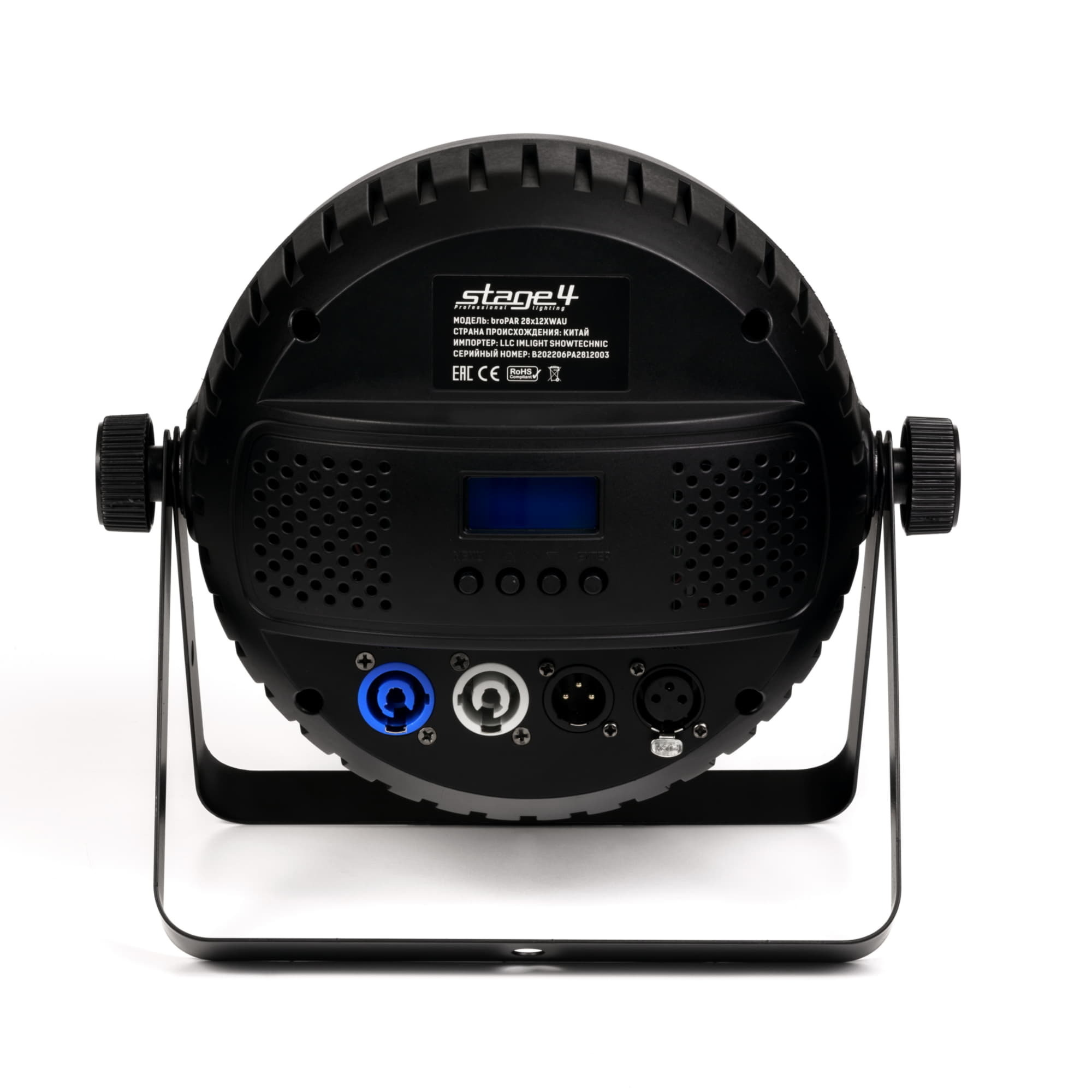 STAGE4 BROPAR 28X12XWAU Прожектор типа PAR (ZOOM)/ 28х12 вт / RGBWA+UV / 68 Ra / 3081 лм / 13647 кд / 518 лк@5 м / 2700-8000 К / ZOOM: 14,4°-90,2° / 4 сегмента / RDM / 2,8 кг / до 5 (2,5) м